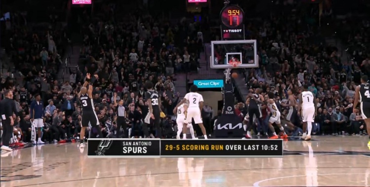 带走比赛!马刺在往常的11分钟工夫里打了鹈鹕29-5的攻势体育集锦