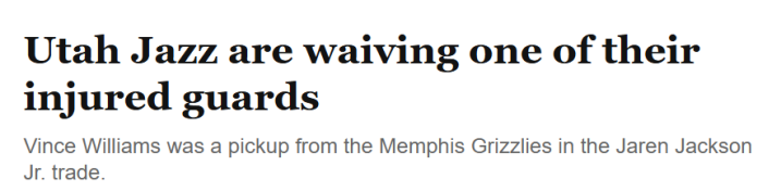 北京时分3月10日,据《盐湖城论坛报》记者雷诺兹报说念,犹他爵士队将裁掉受伤的后卫小文斯-威廉姆斯。