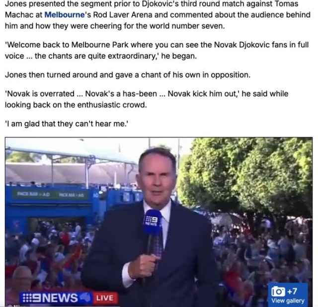 中新网北京1月19日电 (记者 邢蕊)据外媒报说念,澳大利亚第9频说念的资深主理东说念主托尼-琼斯在报说念澳网公开赛时体育录像/图片,公开嘲讽塞尔维亚球星德约科维奇“已过气”。