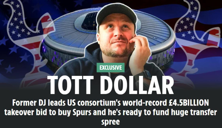 英国媒体太阳报记者Martin Lipton独家报说念,一个好意思国财团向热刺俱乐部建议了45亿镑的收购报价,也创下了寰球记录。太阳报音讯源夸耀,科技企业家布鲁克林-埃里克正教导一个由12东说念主构成的团队,建议了这一令东说念主畏缩的报价。