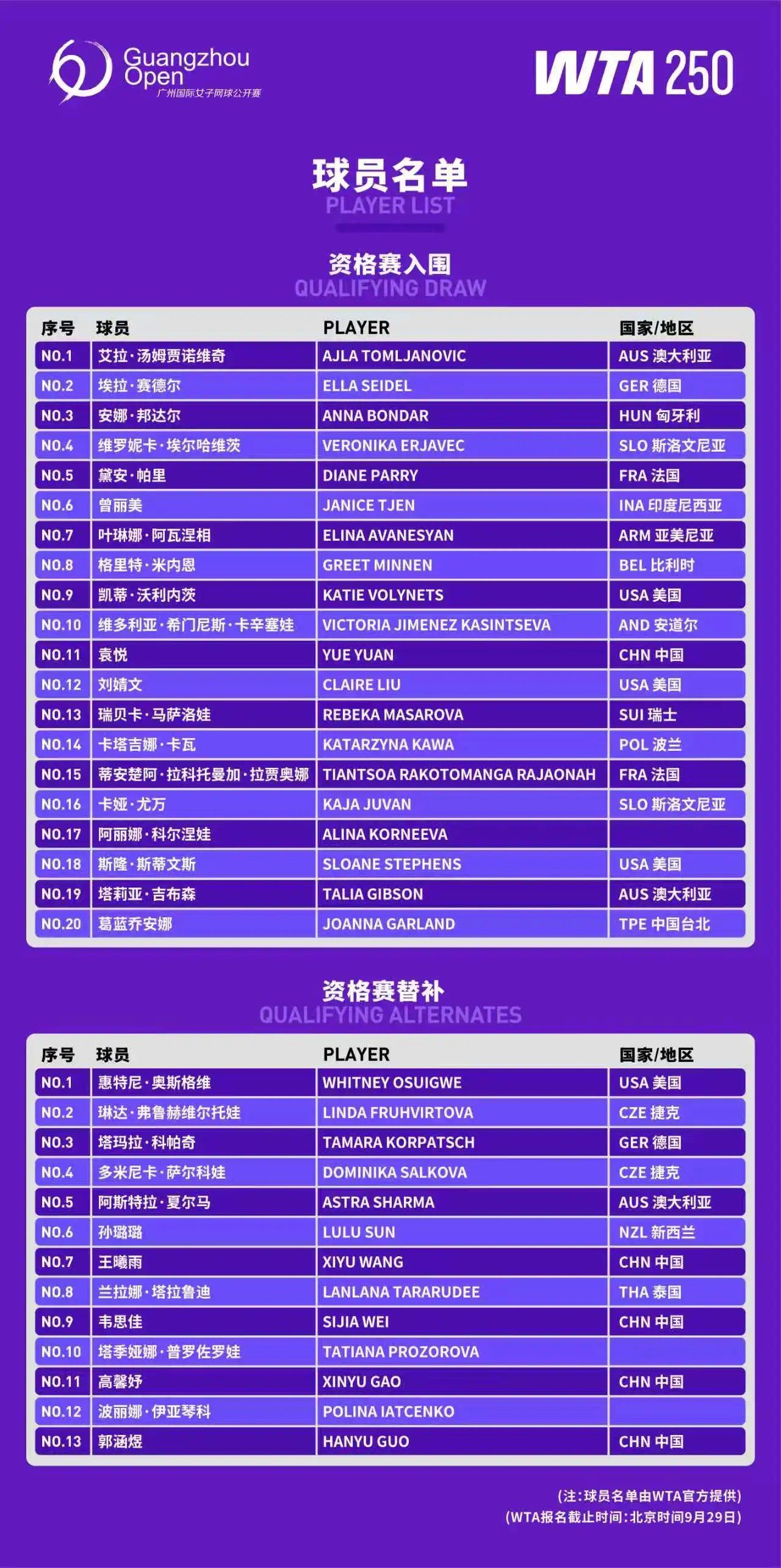 资历赛名单。