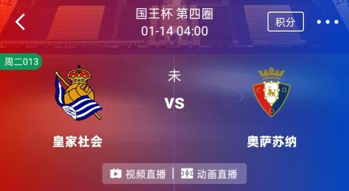 周二 013 国王杯:皇家社会VS奥萨苏纳